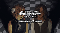- October 20, 2022 by Tymedust Games6#pitstop in purgatory, #sale, #ends, #soon, #steam, #itch, #deluxe editionHi everyone! Just giving you a quick heads up that if you want to get Pitstop in Purgatory for that sweet 10% off, now is the time! You can get it on Steam or right here on itch.io - also be sure to c... Continue reading