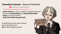 - May 21, 2023 by Tymedust Games12#sneak peek, #patreon, #sunday, #update, #work, #wip, #purgatoryverse, #poetry in purgatoryRise and shine, Dwellers! It's Sunday Update #10! This has been hands down the most productive week of development so far! 10k+ words written, the prologue being done (script-wise), new coding (and co... Continue reading