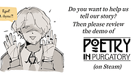- November 21, 2023 by Tymedust Games22#poetry in purgatory, #milestone, #devlog, #news, #update, #version, #0.2, #teaserRise and shine, Dwellers! Hoo boy, we've reached some new milestones recently... and, well... All I can say is THANK YOU from the bottom of my heart, even though it doesn't feel like it's enough... bu... Continue reading